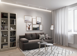 Спинка, выполненная в обивочной ткани, позволяет ставить диван в центре комнаты и зонировать пространство.