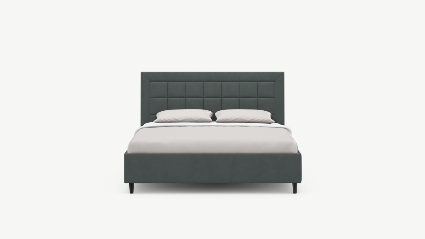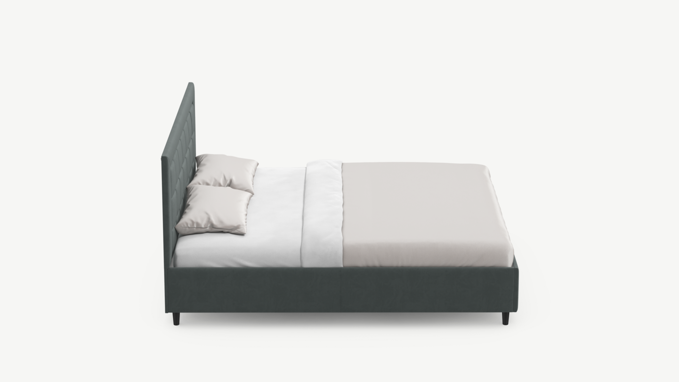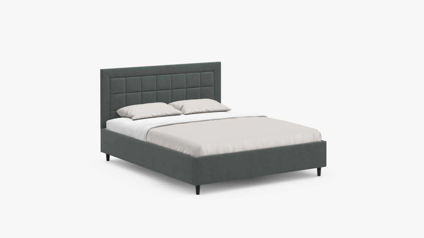 Стежка помещена в центр изголовья и обрамлена, словно картина. Объемные царги завершают цельную фигуру кровати и становятся гармоничным дополнением ее образа.