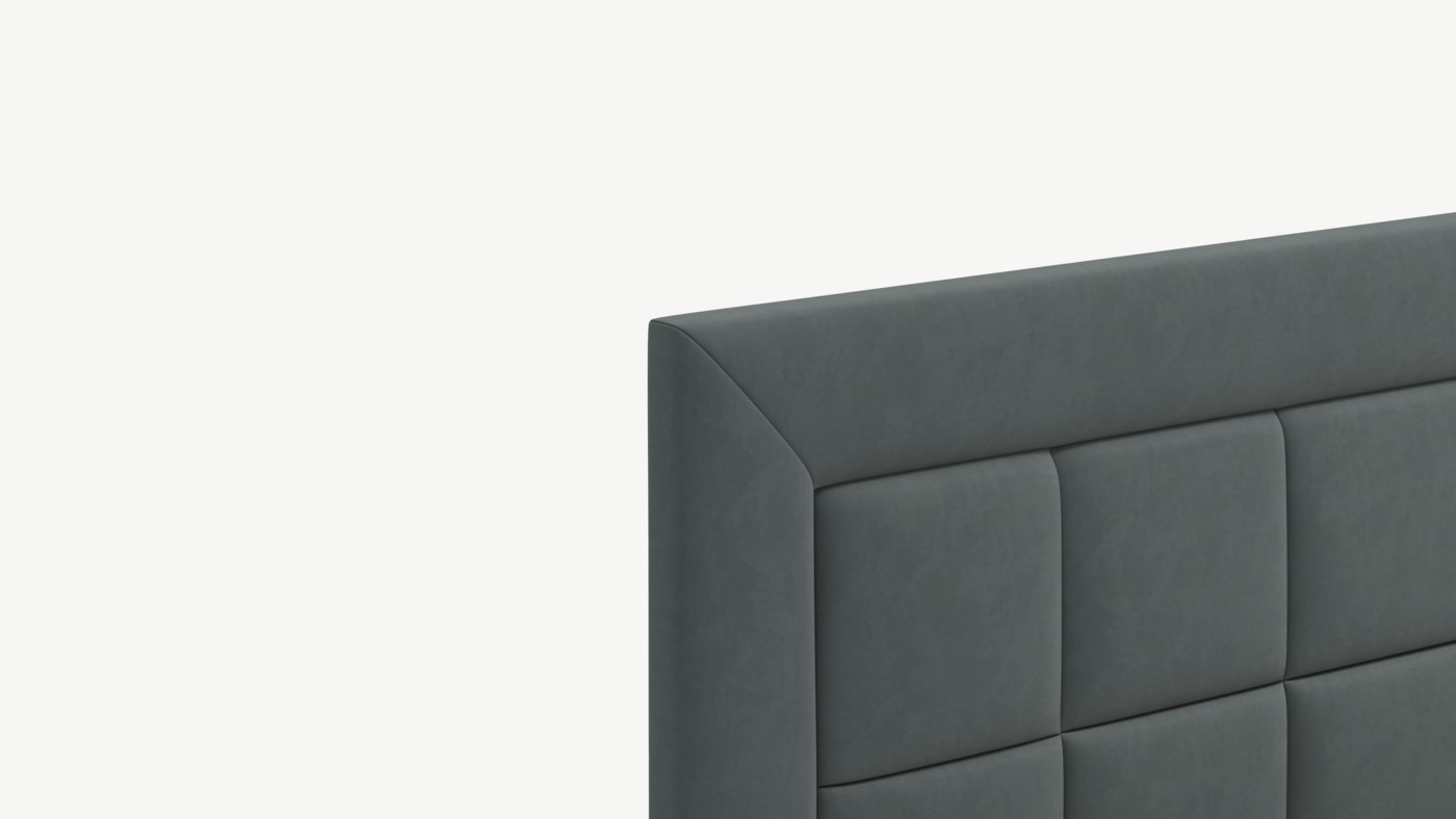 Изголовье декорировано рельефным рисунком стежки в крупный квадрат, получившим особую фактуру за счет глубины шва.