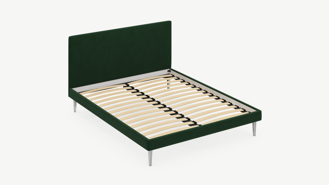 Кровать MOON FAMILY 1256 демонстрирует безупречный баланс изящных пропорций. Лаконичное изголовье, узкие царги и высокие опоры создают эффектный образ, привносящий в пространство спальни стильный и яркий акцент.