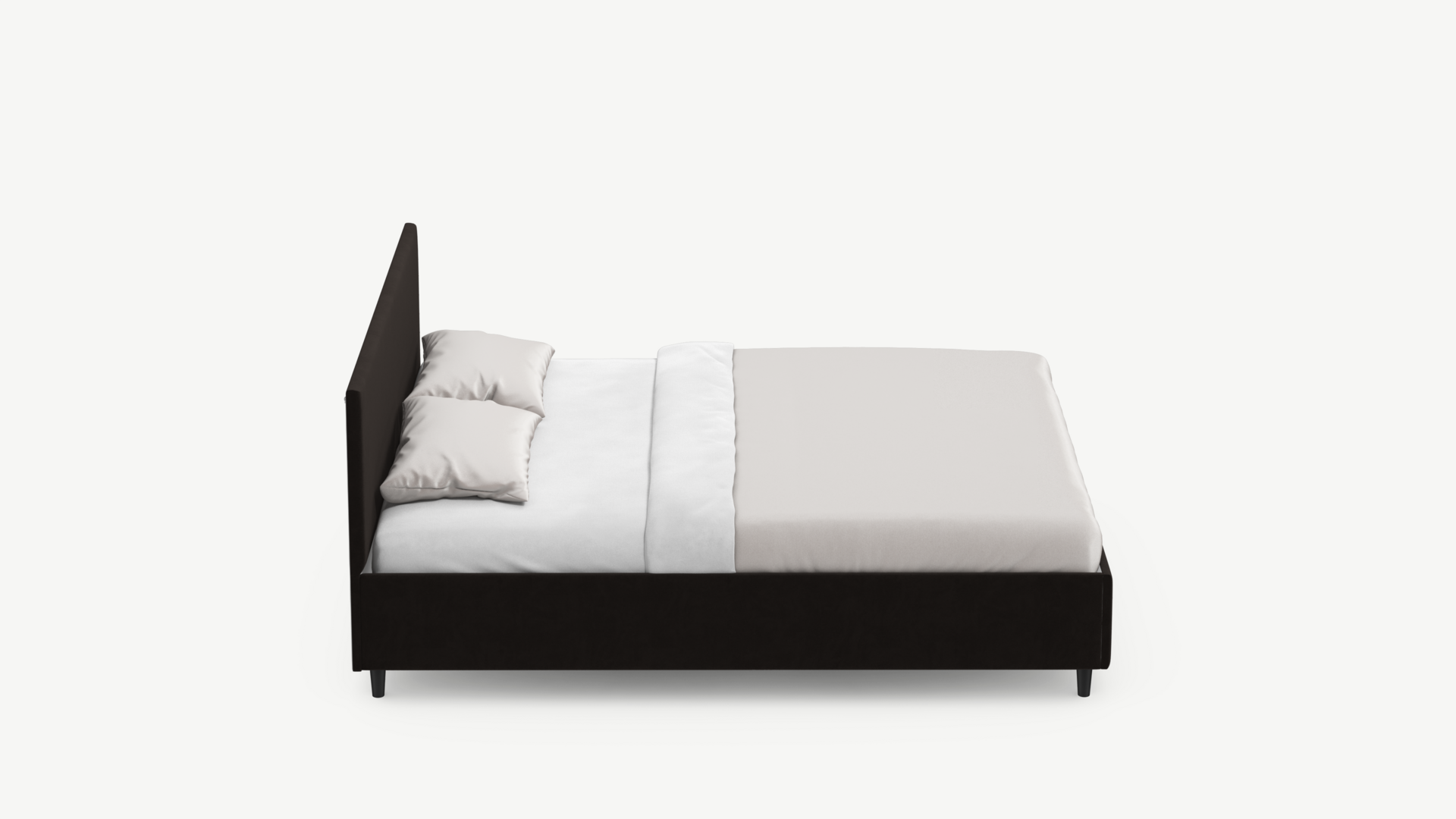 MOON FAMILY 1259 – дизайн, воспевающий простые формы. Два основных периметра кровати – царги и изголовье – намеренно лишены какого-либо декорирования, а их четкие простые линии – еще одна возможность визуально разгрузить пространство.