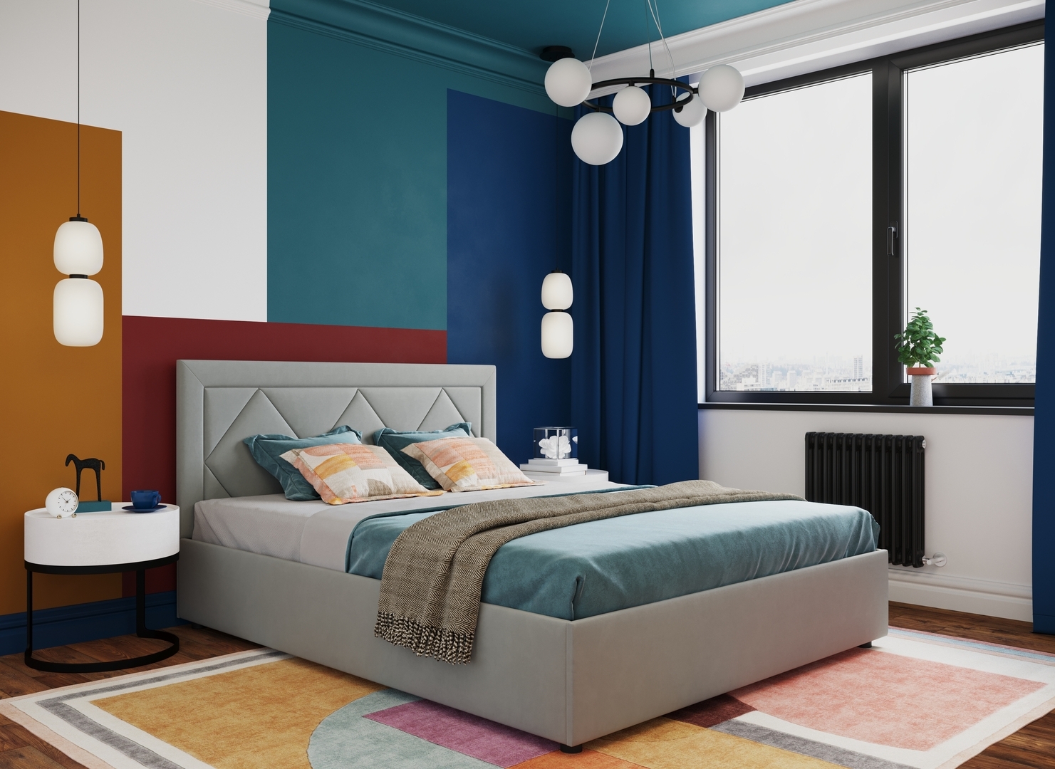 Создать гармоничный интерьер и завершить образ спальни помогут дополнительные аксессуары, например: тумбы, банкетки, подушки.