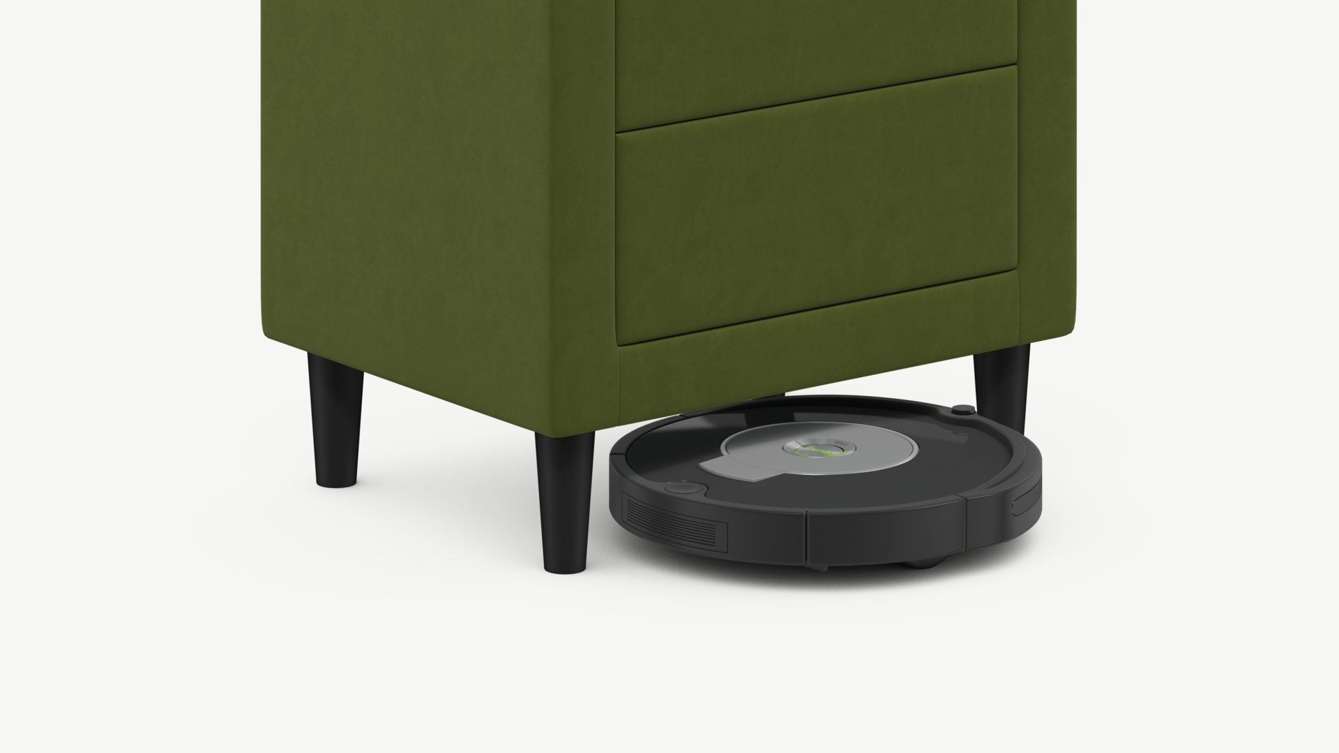 Под тумбой с высокими опорами проходит робот-пылесос и легко проводится влажная уборка, что обеспечивает чистоту и порядок в доме.