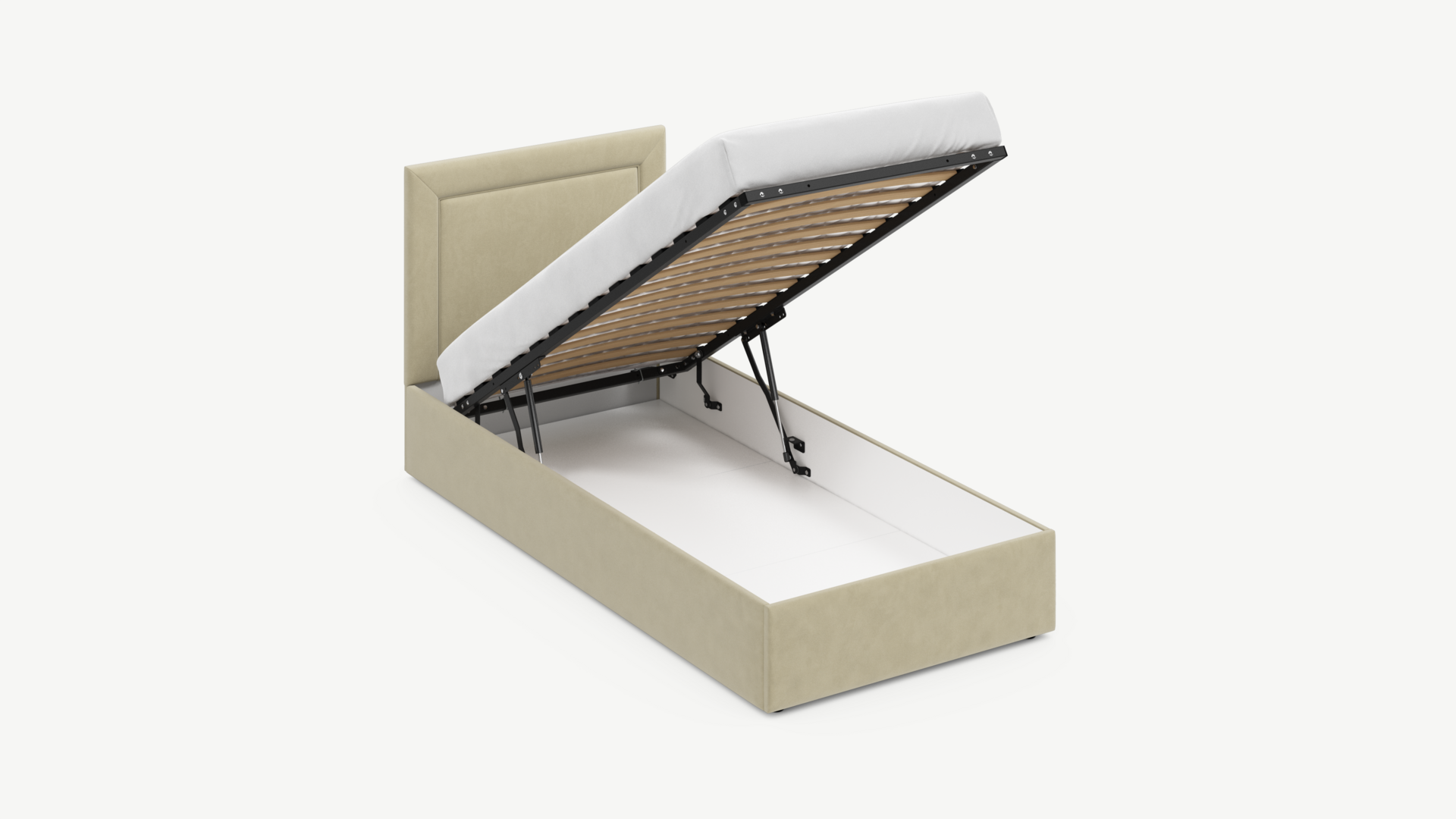 Регулируемый подъемный механизм с газовыми амортизаторами позволяет плавно и бесшумно поднимать и опускать спальное место.