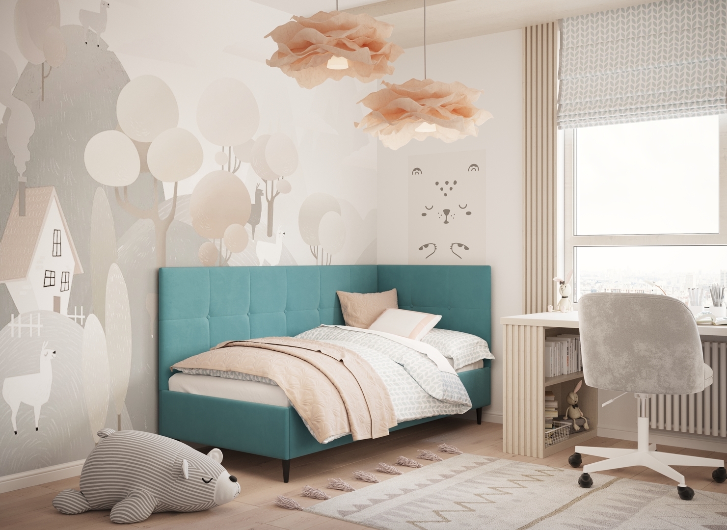В подростковой комнате эта кровать станет стильным акцентом окружающего интерьера и возьмет на себя роль удобной кушетки для друзей, зашедших в гости.