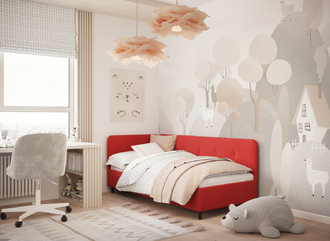 В подростковой комнате эта кровать станет стильным акцентом окружающего интерьера и возьмет на себя роль удобной кушетки для друзей, зашедших в гости.