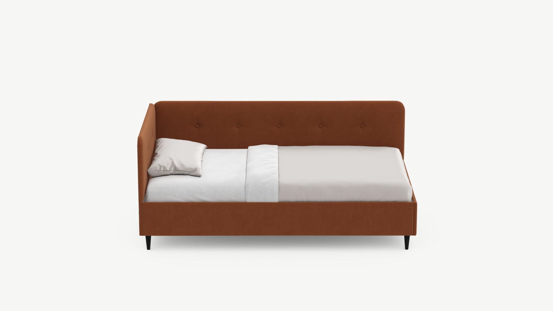 Кровать угловая с подъемным механизмомУгловая односпальная кровать MOON FAMILY 1253 с мягкой спинкой и изголовьем обладает округлыми формами, привносящими в интерьер нотки нежности. Изголовье, украшенное пуговицами, добавляет окружающему пространству шарм и уют. Высокие опоры придают кровати визуальной легкости, а также обеспечивают удобство во время уборки.
