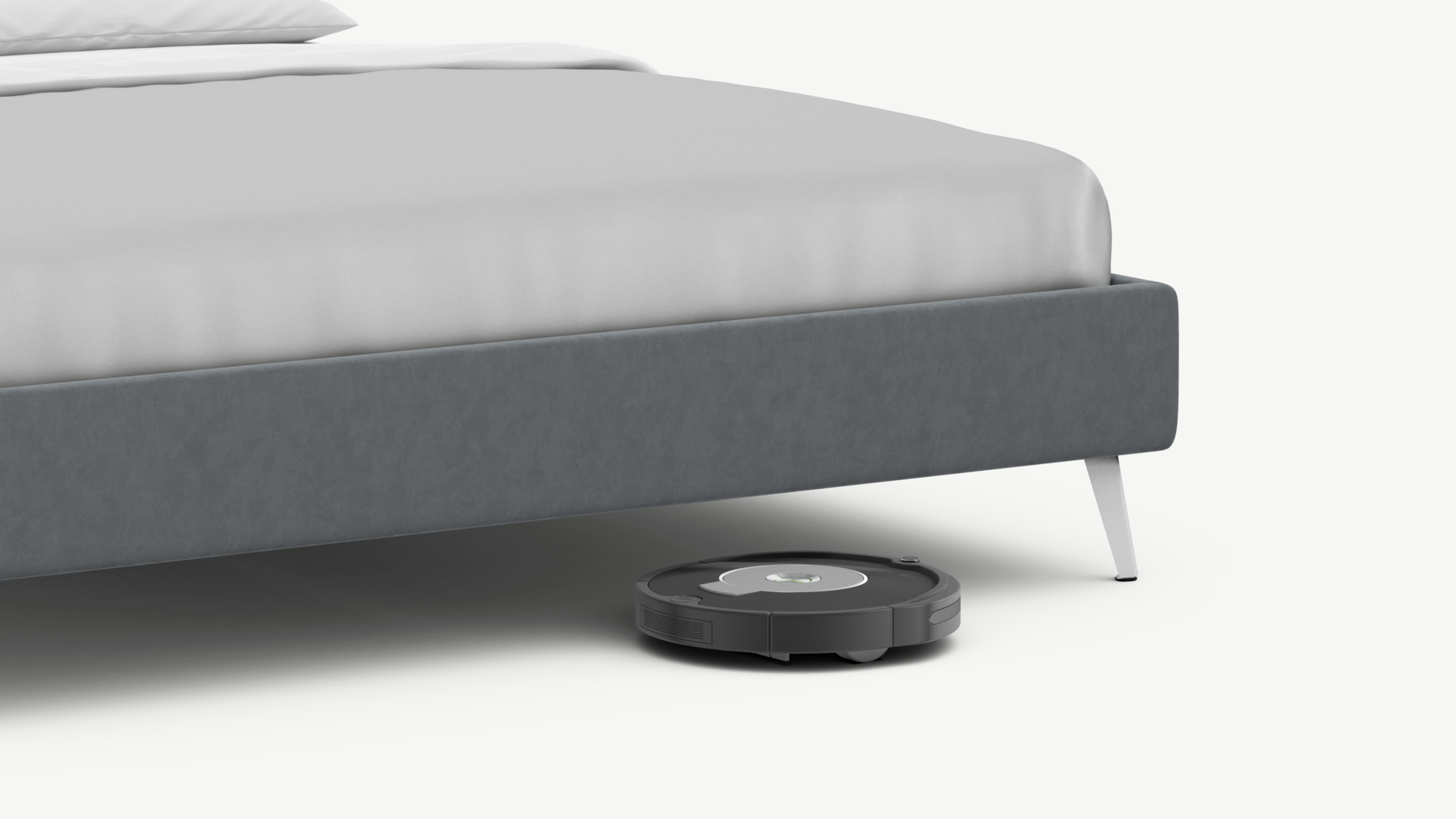 Высокие металлические опоры наклонной формы создают над полом достаточный просвет для движения робота-пылесоса, что помогает поддерживать чистоту и порядок в доме.