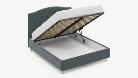 • Скрытая под основанием вместительная емкость без внутренних перегородок позволяет использовать всю площадь подкроватного пространства для хранения вещей.