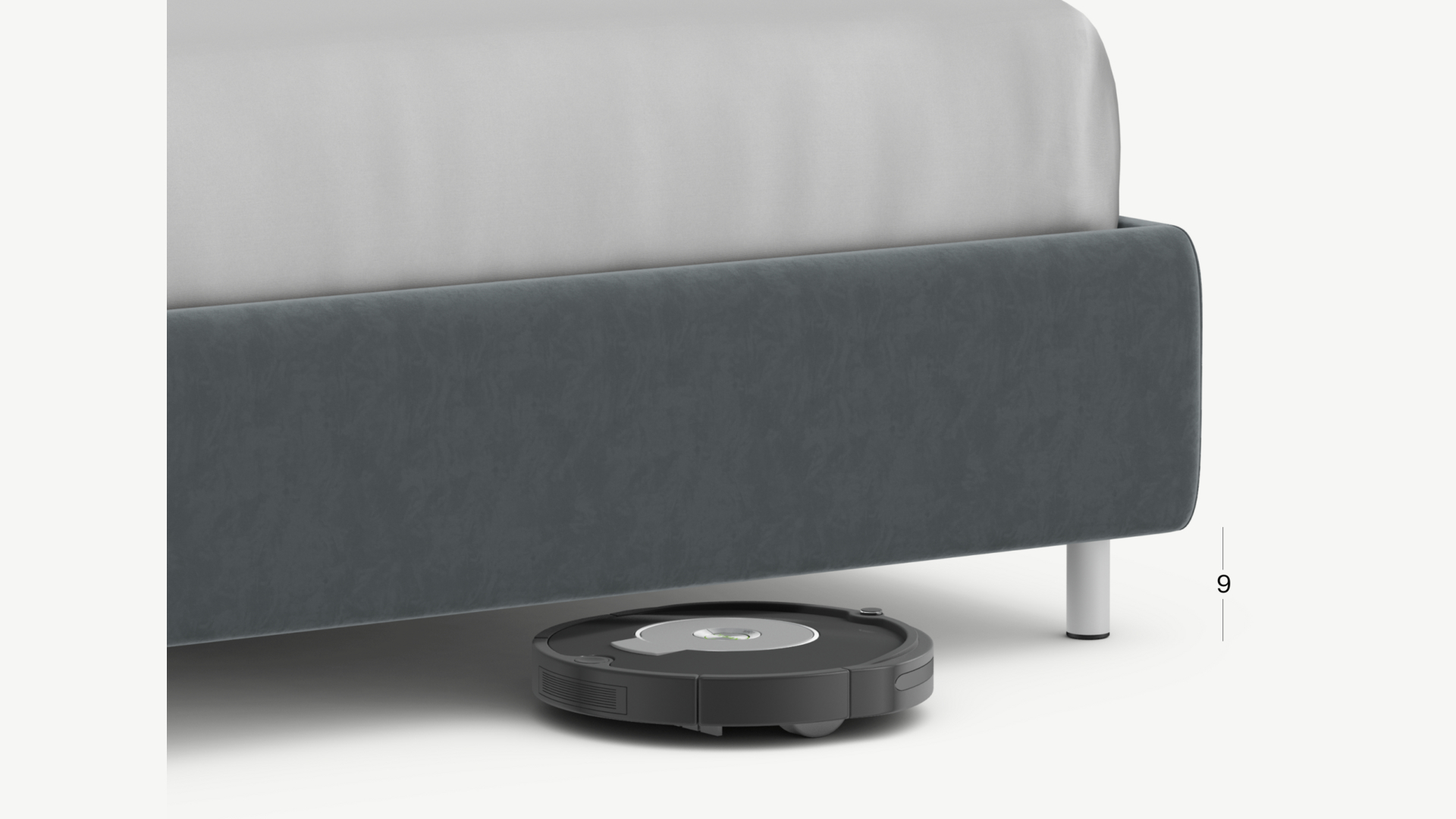 Высокие металлические опоры создают над полом достаточный просвет для движения робота-пылесоса, что помогает поддерживать чистоту и порядок в доме.