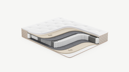 Повышает жесткость и плотность спального места, а также обеспечивает оптимальный воздухообмен благодаря объемной структуре материала. Улучшает эксплуатационные показатели матраса, не давая пружинному блоку механически воздействовать на комфортные слои.