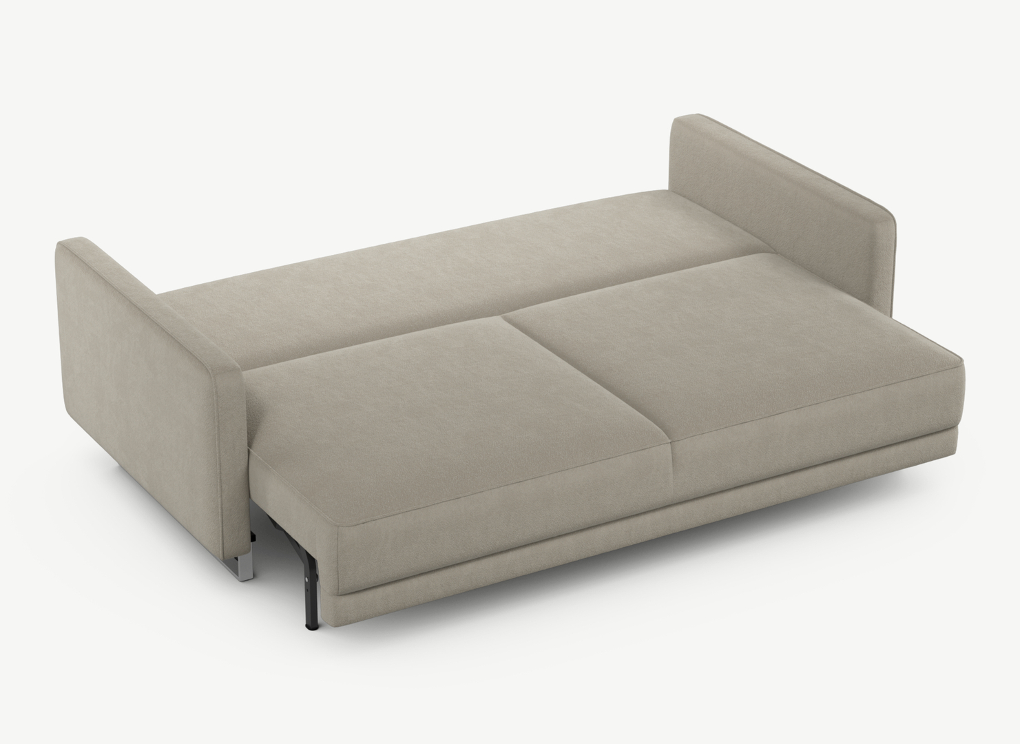 Механизм трансформации «Пантограф» подходит для ежедневного использования. Позволяет легко раскладывать и складывать диван, обеспечивая минимальный контакт дополнительных опор с напольным покрытием. Диван стоит на прямоугольных опорах, в то время как дополнительные остаются скрытыми, появляясь плавно и бесшумно в единственно нужный момент — при трансформации дивана в кровать.